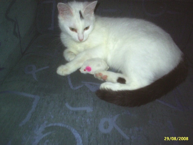 [dosłownie].Teraz w jego miejscu jest taka mała biała kitka podobna do króliczej. Mogę strzleić fotkę od tyłu, jak się pojawi w domu